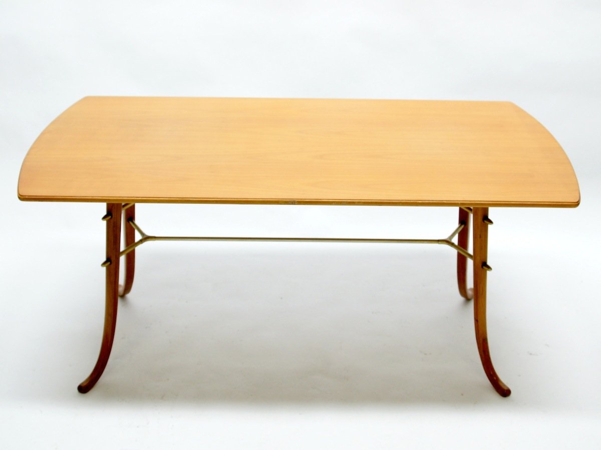 Constructed of simple birch wood frames and discarded parachute webbing because of wartime Coffee and Side Tables Left: Round and Square Side Tables and Amoeba Coffee Table in Light Walnut finish. Round Dining Table, above, in Light Walnut finish ... Read Content