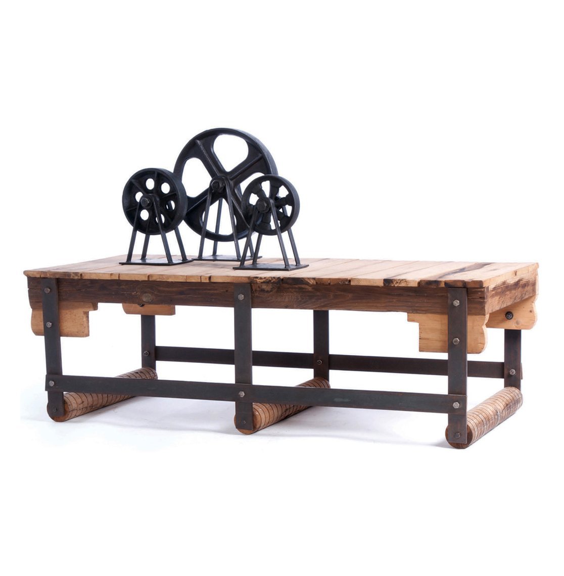Luxury Furniture Auction Ex- Showroom 18 16 Vantage Lamp Table Reinterpretation Of The Vintage Steamer Trunks This Coffee Table Is Detailed With Metal Accents Functioning Locks And Leather Handles 60 Combination of Reclaimed Wood From Decommissioned Chinese Fishing Junks ... Return Document