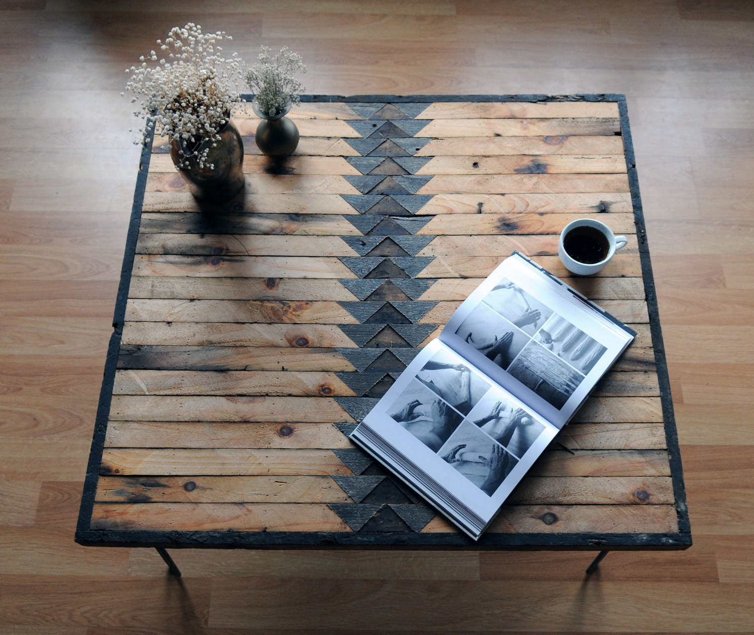 Pallet Coffee Table Made from a shipping pallet. Bed is made using wood from shipping pallets. Wood is sanded smooth, stained and sealed with polyurethane. Industrial Farmers Table Reclaimed wood, metal piping, industrial brackets. ... Read More