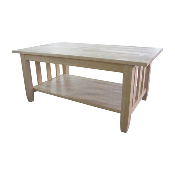 This solid wood International Concepts Hampton Coffee Table - Natural comes unfinished so you can custom paint or stain it as you desire. This coffee table features open X sides for casual style and a lower shelf for coffee table books and more. ... Return Doc